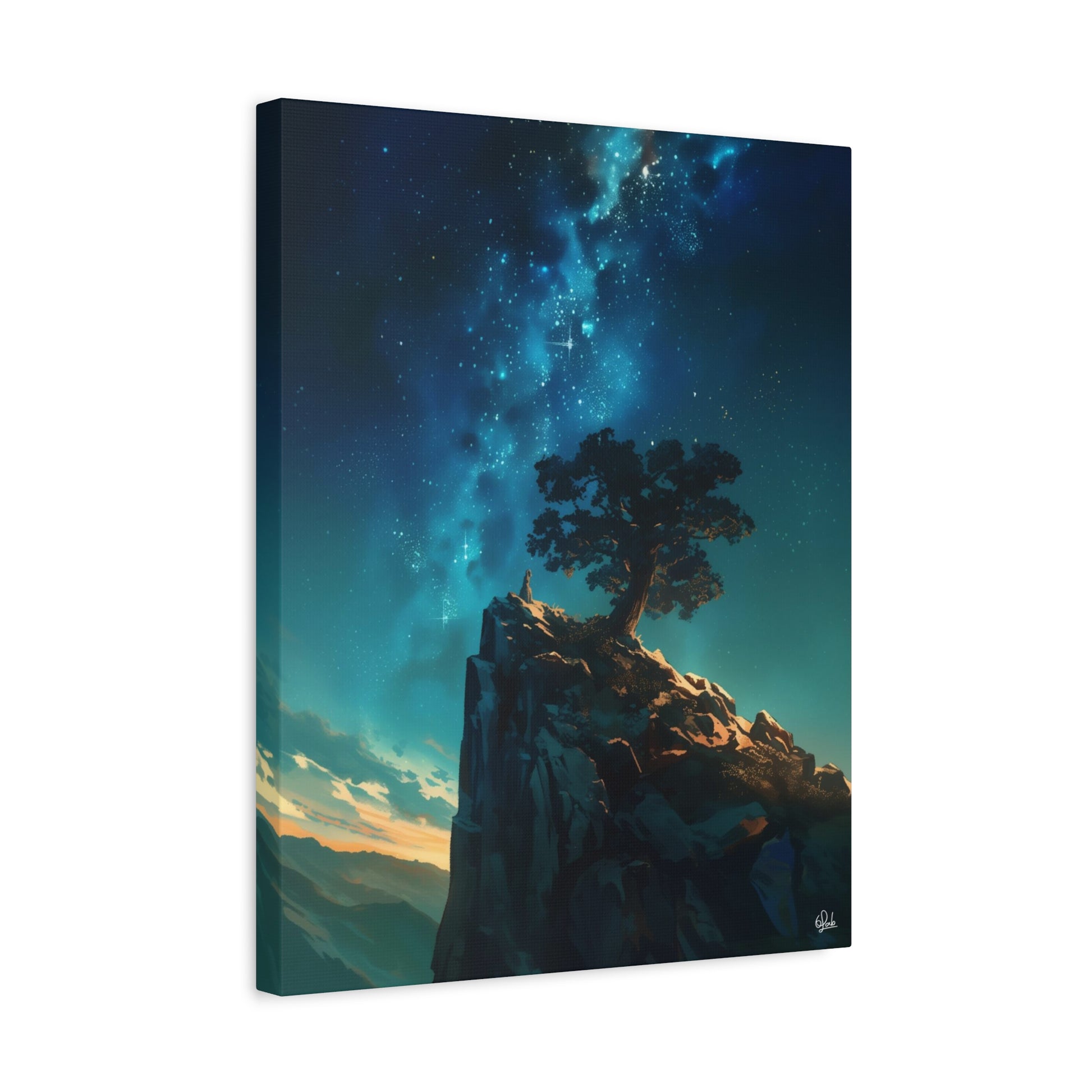 A breathtaking view from the edge of a cliff, where the vastness of the galaxy stretches across the night sky. Stars twinkle and cosmic colors blend, creating a sense of wonder and infinity. Perfect for those who appreciate the beauty of nature and the awe-inspiring mystery of the universe.